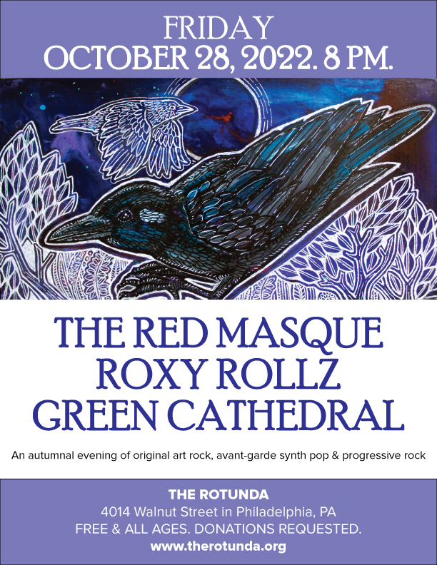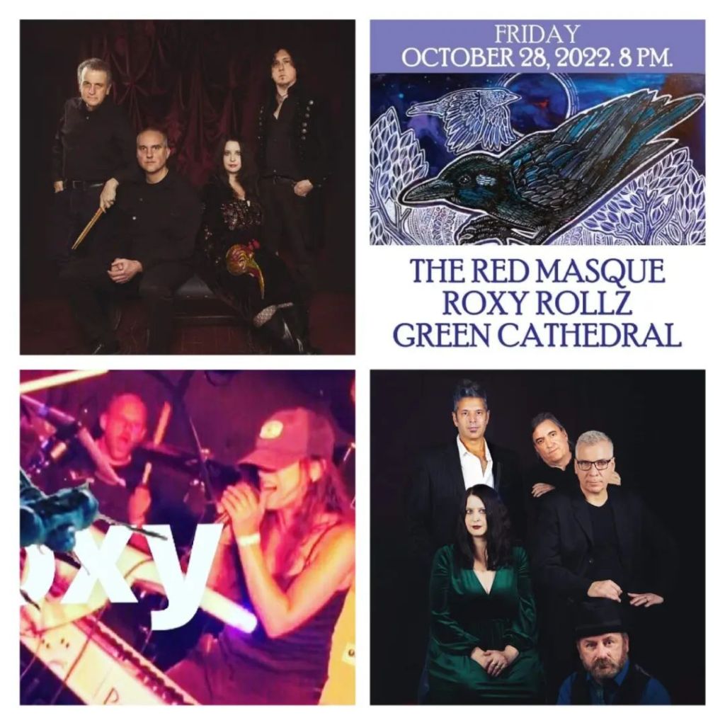 THIS FRIDAY! October 28, 2022 Halloween show with The Red Masque, Roxy Rollz and Green Cathedral.