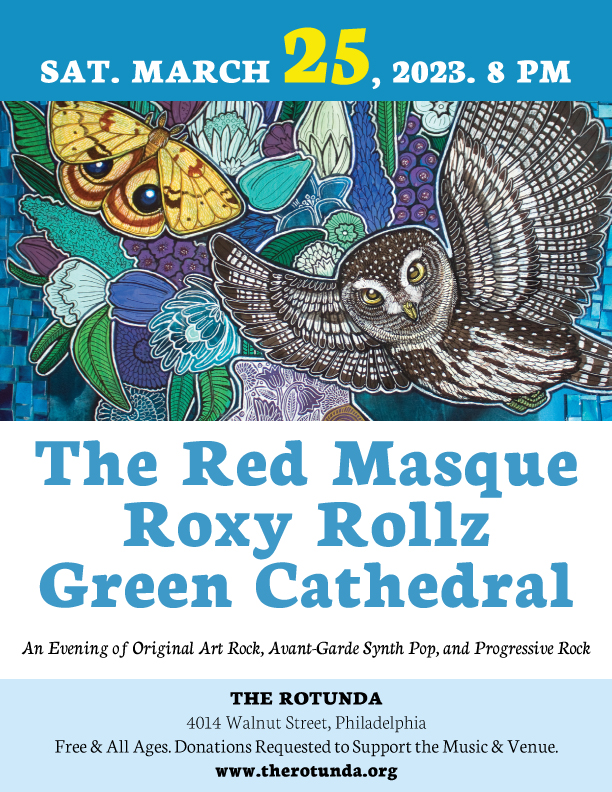 Here is the revised gig flyer for the rescheduled Rotunda / Philadelphia show. Our Rotunda show will be on Saturday, March 25 at 8 PM and will be a free and all ages show (though donations are encouraged to help support the musicians and the venue).