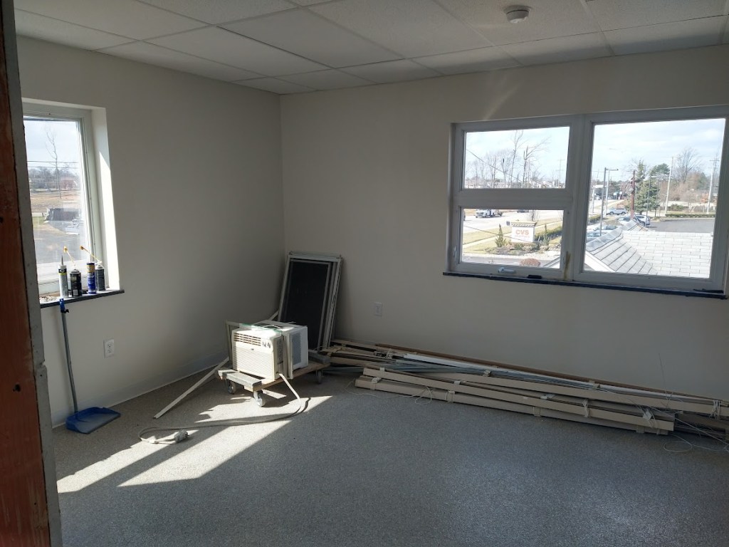 Luckily, we have since found a new place in Maple Glen, PA. Although this new space does not have the cool industrial vibe Studio 6 did, it does have a lot of other good features – dedicated parking, less stairs to haul stuff up and down, climate control, lots of light, a newly renovated space (while the building dates back to 1961, it was rehabbed with new electric, plumbing, roof, floors, etc in the past year). The space we are renting is a suite divided into two rooms – one room will be a dedicated rehearsal spot and my art studio will be just off to the side of this space). Plus it has a good size storage closet. We will be on the second floor (above a martial arts school and next to some insurance offices). It’s in a commercial corridor but fairly quiet, and located near eateries, a brew pub, and other conveniences (like a bubble tea place that I like!). Also it’s only 9 minutes from where I live, which is closer than the old studio.