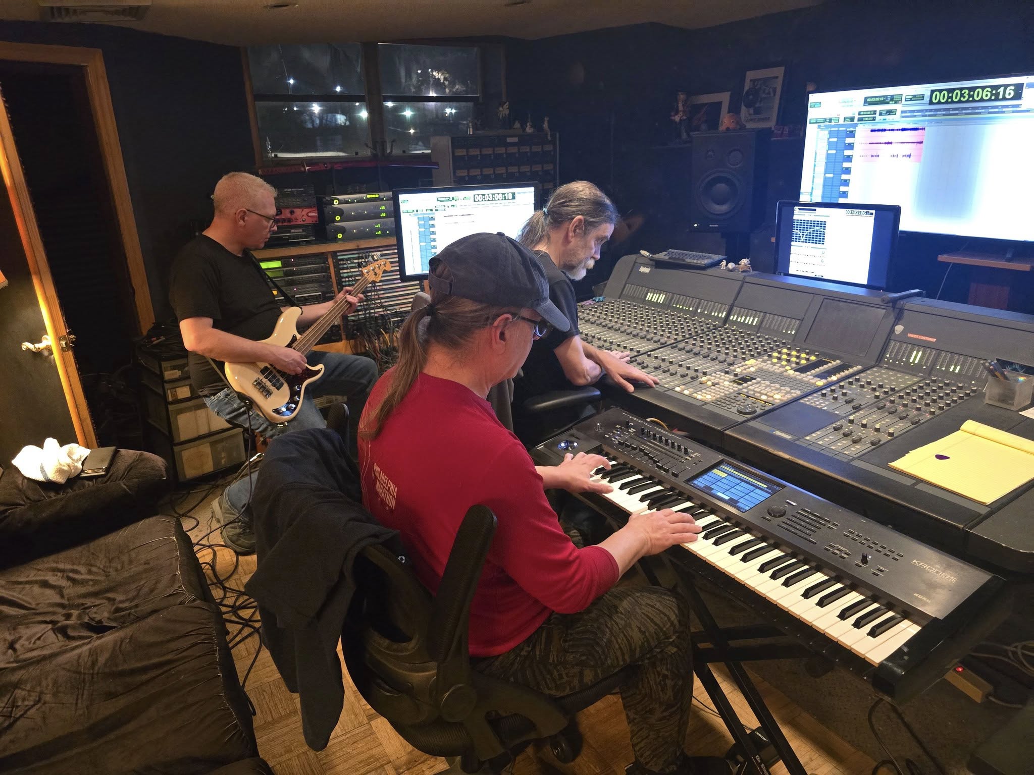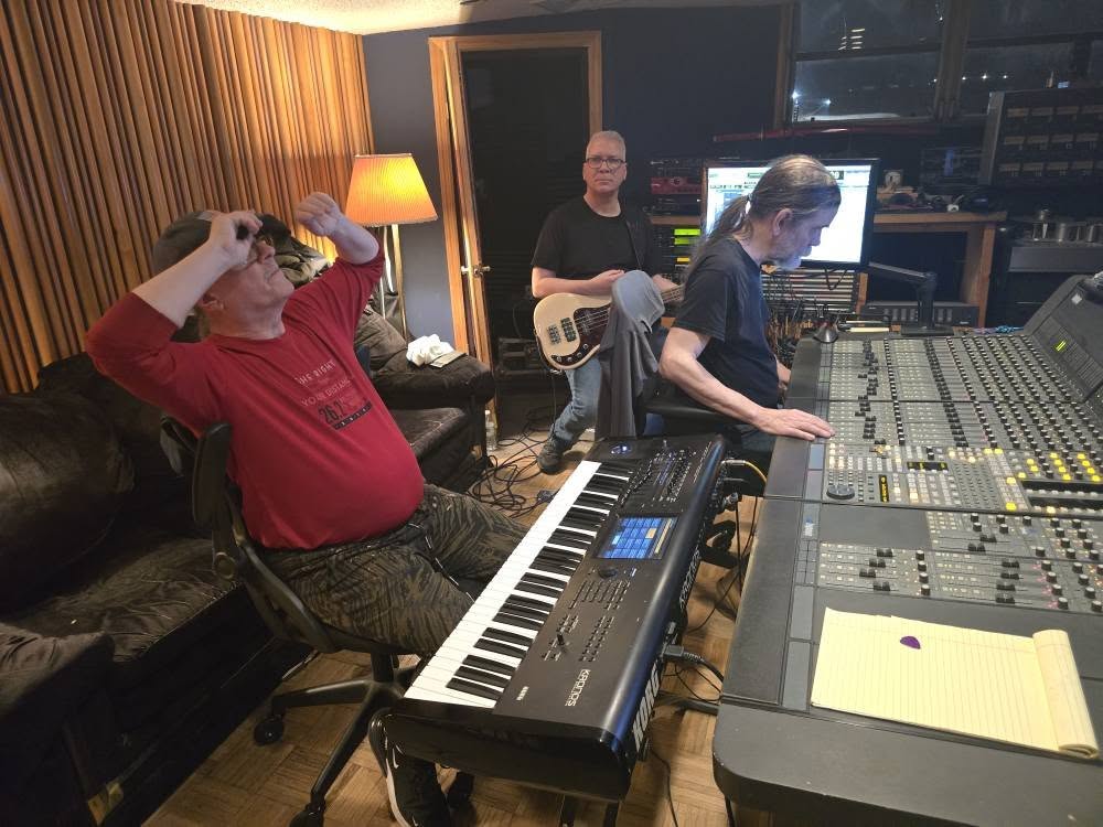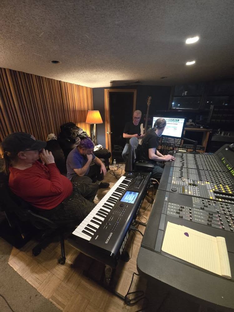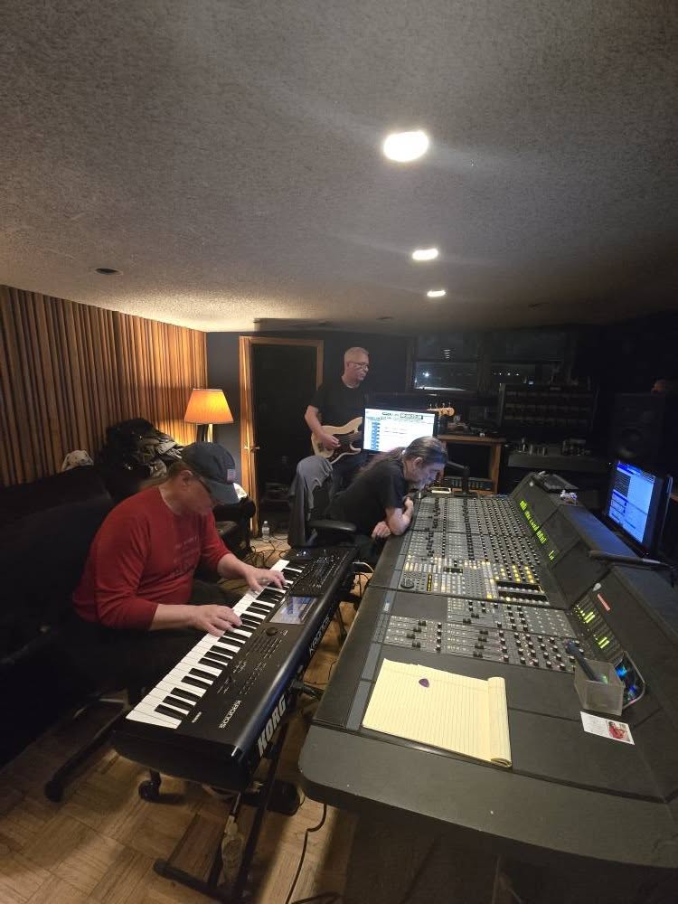 This past weekend we started working on our new album at Philly Jam Recording with engineer Mark J. Montoro. Mark engineered our first album, “Winter’s Veil”, back in 2017, and we liked working with him, so we decided to return to the scene of the crime. Plus, Tom and Joe have worked with him as a session drummer and keyboardist, respectively, for various projects, as well as their own projects, for many years prior to that. Tom even keeps a drum kit at the studio for his use when he’s there. So we have a good working relationship with Mark.